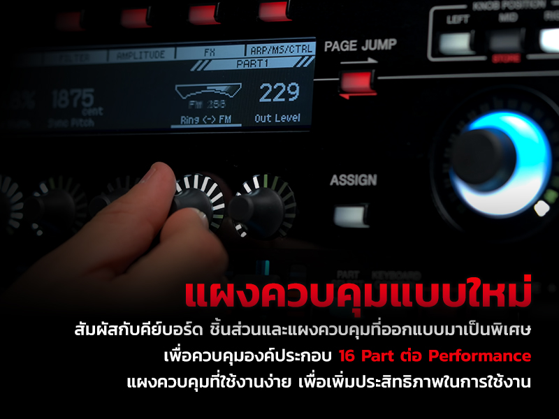คุณจะได้สัมผัสกับคีย์บอร์ด ชิ้นส่วนและแผงควบคุมที่ออกแบบมาเป็นพิเศษเพื่อควบคุมองค์ประกอบ 16 Part ต่อ Performance แผงควบคุมที่ใช้งานง่ายซึ่งเหมาะอย่างยิ่งสำหรับการแสดงสดจะเพิ่มประสิทธิภาพในการใช้งาน อีกทั้งยังเพิ่มมิติให้กับการแสดง
