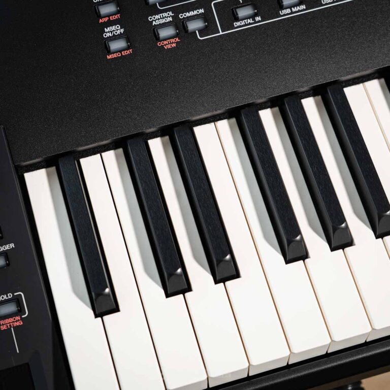 - Initial Touch – The keys are highly responsive to the level of pressure applied when playing the synth, giving you a wider creative ability, utilising modern technology. For Pianists, this emulates a feel of a classic Piano resulting in the true authentic experience.