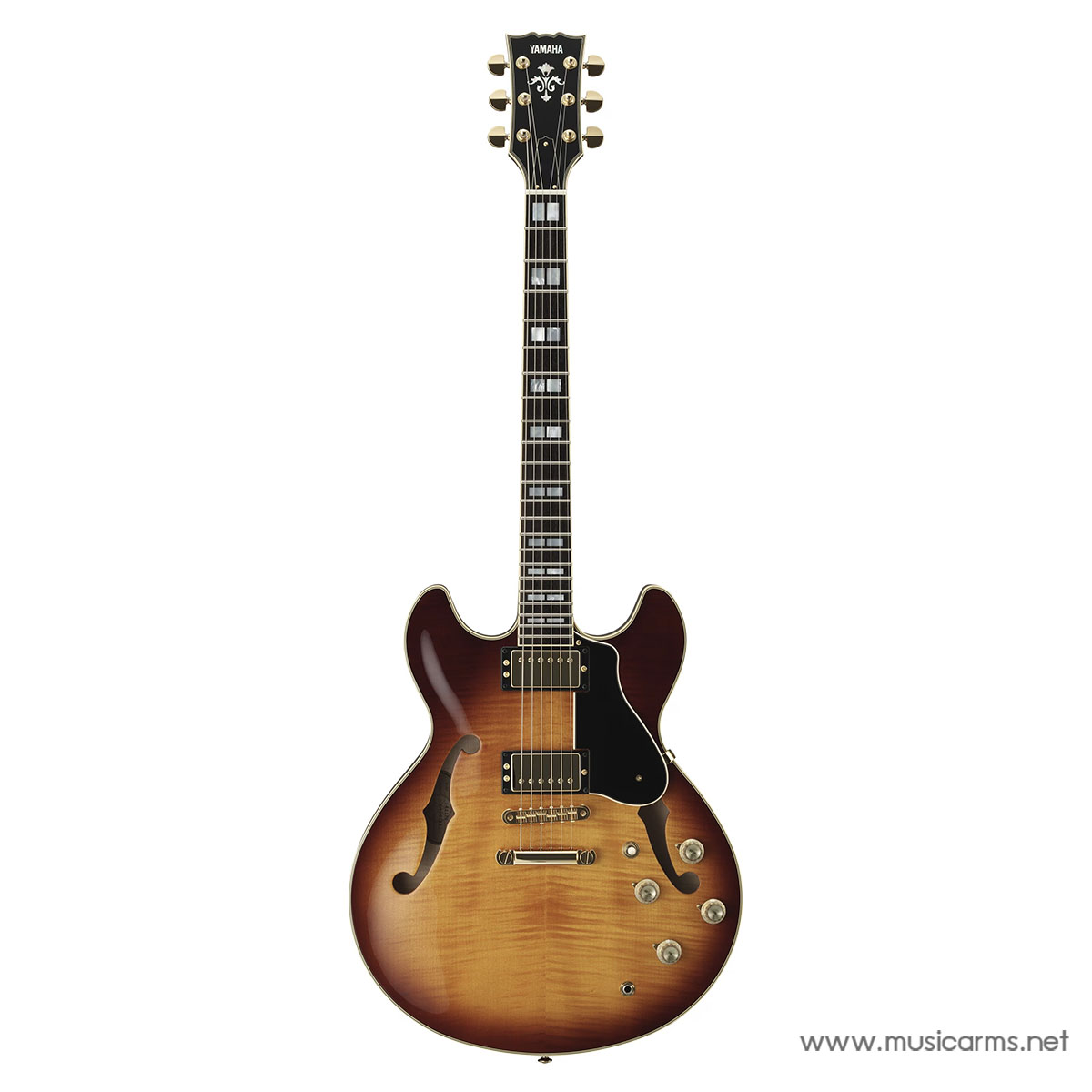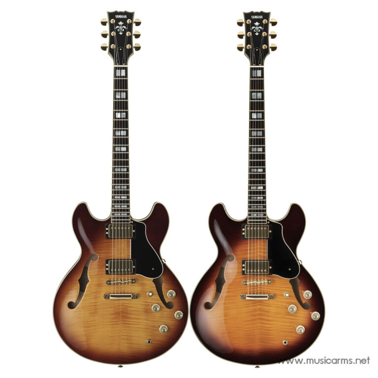 Yamaha SA2200 Semi-Acoustic Electric Guitar เป็นการพัฒนาใหม่จากกีตาร์เซมิ-อะคูสติกแบบดั้งเดิม โดยมีการออกแบบที่ใช้บล็อกไม้แข็งภายในเพื่อเพิ่มการยืดเสียงและความต้านทานการสะท้อนกลับ ตัวบอดี้ที่มีขนาดบางนี้สามารถสร้างเสียงตั้งแต่โทนเสียงแจ๊สที่นุ่มนวลไปจนถึงเสียงที่แข็งแกร่งและคมชัดเหมือนกีตาร์ไฟฟ้าทั่วไป ปิ๊กอัพ Alnico V แบบกำหนดเองจับคู่กับสวิตช์ push/push แบบคู่ที่ช่วยให้คุณเปลี่ยนจากการทำงานของซิงเกิลคอยล์ไปเป็นฮัมบัคเกอร์ได้อย่างรวดเร็วและไร้รอยต่อ ทำให้คุณสามารถสร้างเสียงที่หลากหลายได้มากขึ้น