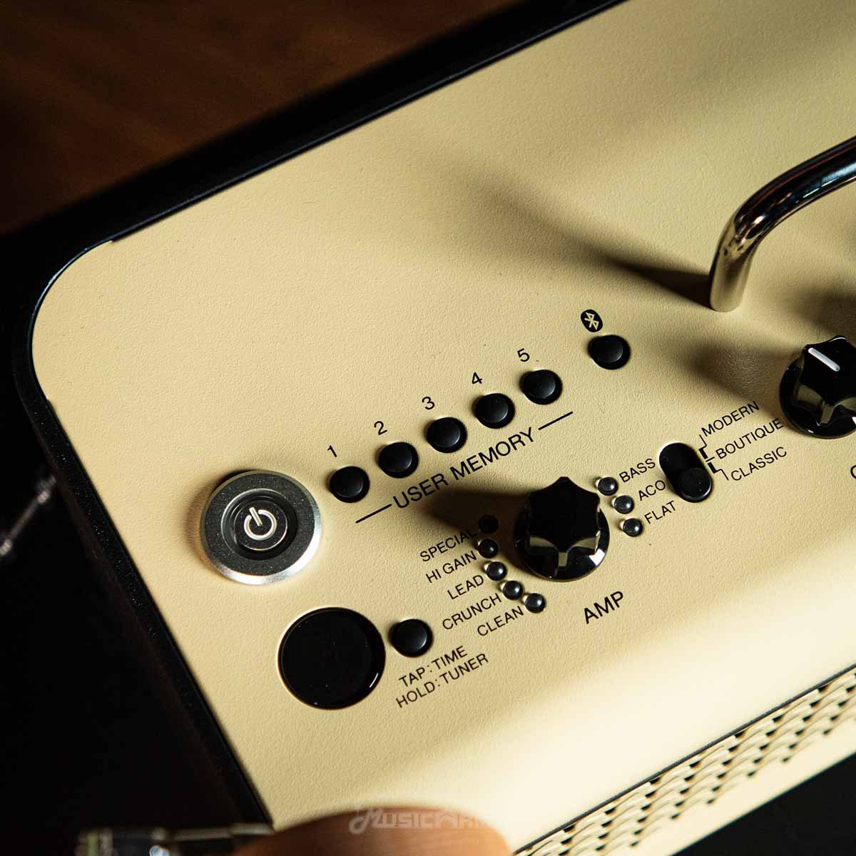 การรองรับ Bluetooth ให้ความสามารถที่เหนือกว่ารุ่นก่อนหน้านี้ เปิดแอพสตรีมมิ่งที่คุณชื่นชอบบนอุปกรณ์สมาร์ทและเล่นตามเพลงที่คุณชื่นชอบ ดำดิ่งสู่โมเดลแอมป์ของ THR10 II แบบไร้สาย ผ่านแอพ THR Remote ของ Yamaha และสร้างพรีเซ็ตที่กำหนดเอง คุณยังสามารถเข้าถึงคอมเพรสเซอร์และเกตเสียงของ THR10 เพื่อเพิ่มความเป็นไปได้ในการปรับโทน และเนื่องจาก Yamaha THR10 II มีปุ่มบันทึกการตั้งค่าผู้ใช้ 5 ปุ่ม คุณสามารถพาพรีเซ็ตที่คุณชื่นชอบไปได้ทุกที่