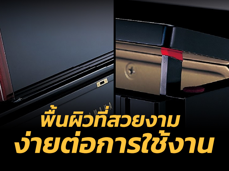 พื้นผิวสีดำขัดเงาซึ่งช่วยเพิ่มความสง่างามและความหรูหรา พื้นผิวไม้วอลนัทอเมริกาแบบซาตินที่ดึงความงามของลายไม้ออกมา อีกทั้งยังมีพื้นผิวไม้มะฮอกกานีขัดเงาอีกเช่นกัน เลือกหนึ่งในเครื่องดนตรีที่สามารถประดับความสวยงามของห้องหรือพื้นที่เล่นดนตรีได้ดีที่สุด * ภาพประกอบเหล่านี้คือภาพของ YUS1 ลายไม้และสีของไม้จะแตกต่างกันไปตามธรรมชาติ โดยขึ้นอยู่กับแต่ละพื้นที่และตัวเครื่องดนตรี