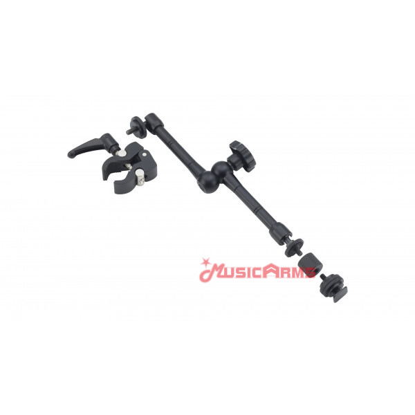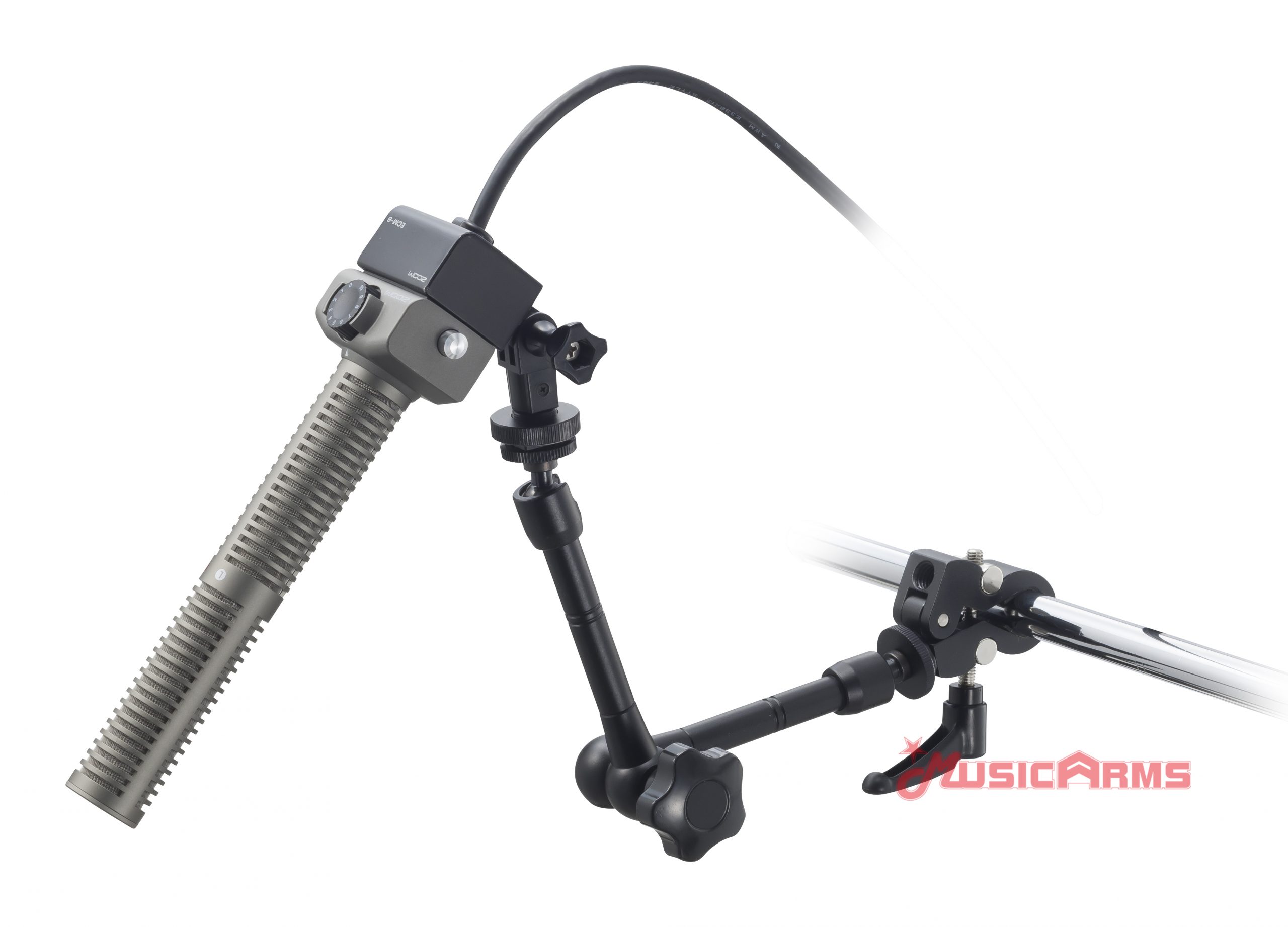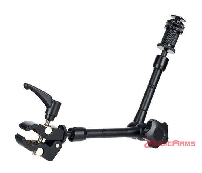 The ZOOM HRM-11 Handy Recorder Mount (11-inch) is a microphone holder / clip / clamp holder for recorders and microphones. The lightweight and strong HRM-11 is made of aluminum. The mounting arm has the multi-function clamp (included) on one side and adjustable fittings for recording settings on the other; 1/4 inch thread or a shoe mount.