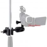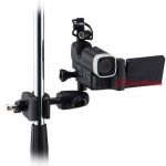 The Zoom MSM-1 Mic Stand Mount allows you to mount your Q4 Handy Video Recorder onto a microphone stand to capture unique and exciting angles of musicians in the rehearsal studio or on stage. The camera attaches via a 3-prong mounting interface, which is also compatible with GoPro HERO housings and frames, as well as other cameras that utilize the GoPro-style mount. Additionally, the mount can be used with a Zoom Q8 when paired with a 1/4″-20 to 3-prong adapter.
