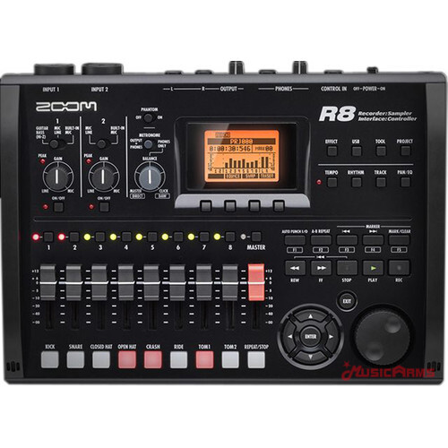 Zoom R8 โซลูชันการผลิตเพลงแบบพกพาพิเศษ เหมาะอย่างยิ่งสำหรับนักดนตรีที่ต้องเดินทาง บรรจุความสามารถรอบด้านของ R24 ที่ใหญ่กว่าไว้ในดีไซน์ใหม่กะทัดรัด R8 ไม่เพียงเป็นเครื่องบันทึก 8 แทร็กที่เขียนไปยังการ์ดหน่วยความจำแฟลช SD เท่านั้น แต่ยังเป็นอินเทอร์เฟซเสียง USB คอนโทรลเลอร์ และแพดแซมเพลอร์อีกด้วย มีการบันทึกพร้อมกัน 2 แทร็กและเล่น 8 แทร็ก สามารถบันทึกไฟล์ WAV ที่อัตราตัวอย่าง 44.1/48kHz และอัตราบิต 16/24-บิต ไฟล์จะถูกบันทึกลงในการ์ดหน่วยความจำ SD ที่มีความจุสูงสุด 32GB สำหรับการบันทึกที่มีความยาว มีไมโครโฟนคอนเดนเซอร์สเตอริโอในตัวสำหรับการบันทึกเสียงโดยไม่ต้องใช้อุปกรณ์เสริม